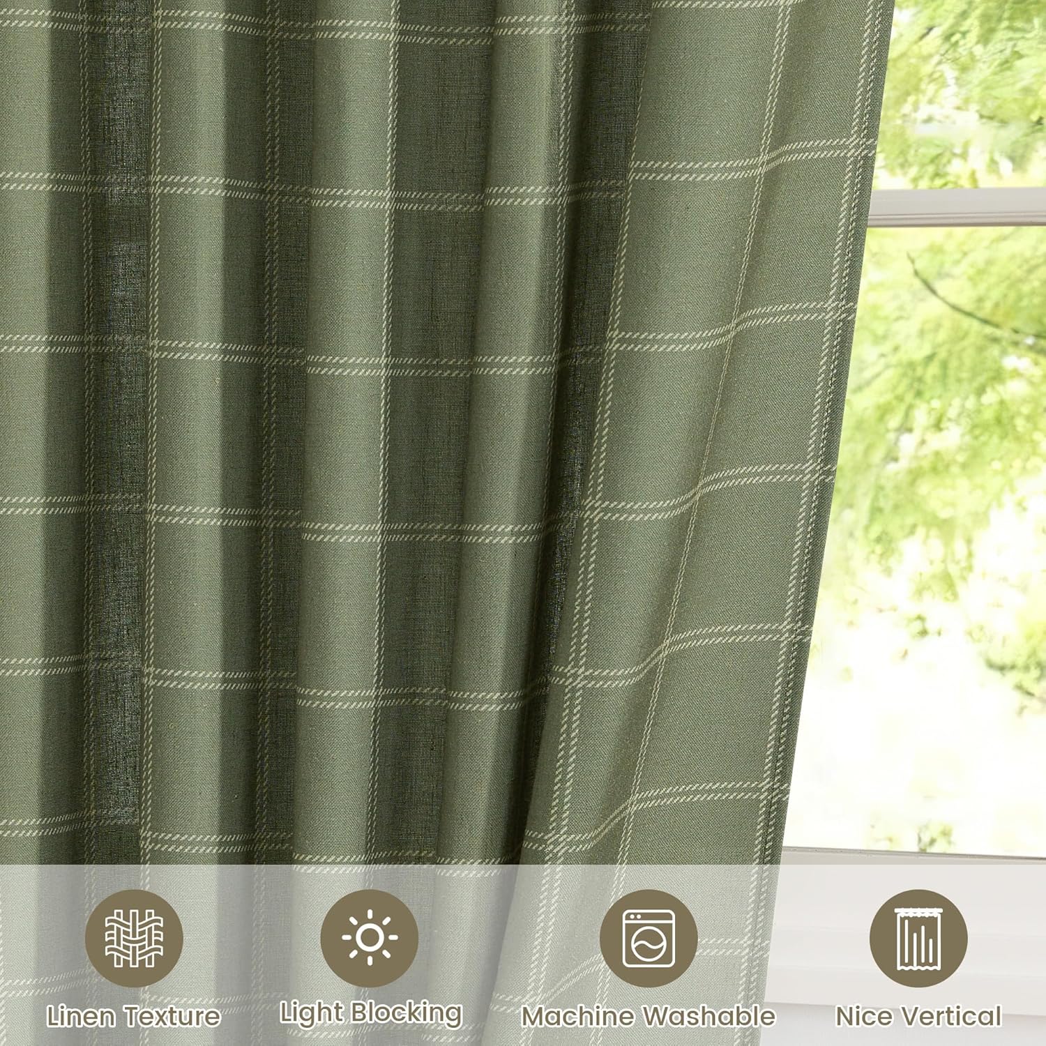 These Linen Blend Plaid curtains are designed to effortlessly enhance your home decor straight out of the package. Each order includes two panels, each measuring 52 inches wide by 96 inches long, offering generous coverage for most standard windows. Their moss green diagonal check pattern and natural texture bring a charming, vintage-inspired look that complements farmhouse, modern, and transitional styles beautifully.