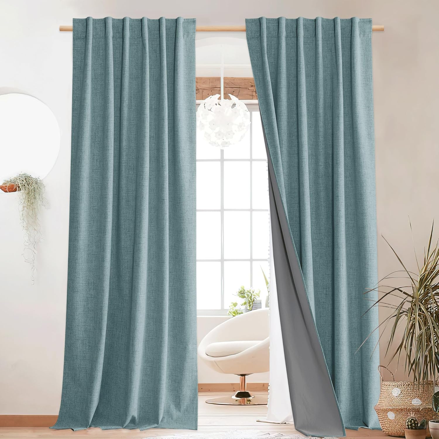 Tired of sunlight ruining your precious sleep, whether you're a night shift worker, a new parent, or just value uninterrupted rest? Our NICETOWN Linen Blackout Drapes are designed to create the perfect dark sanctuary, blocking out 100% of light and giving you the peace and privacy you deserve.