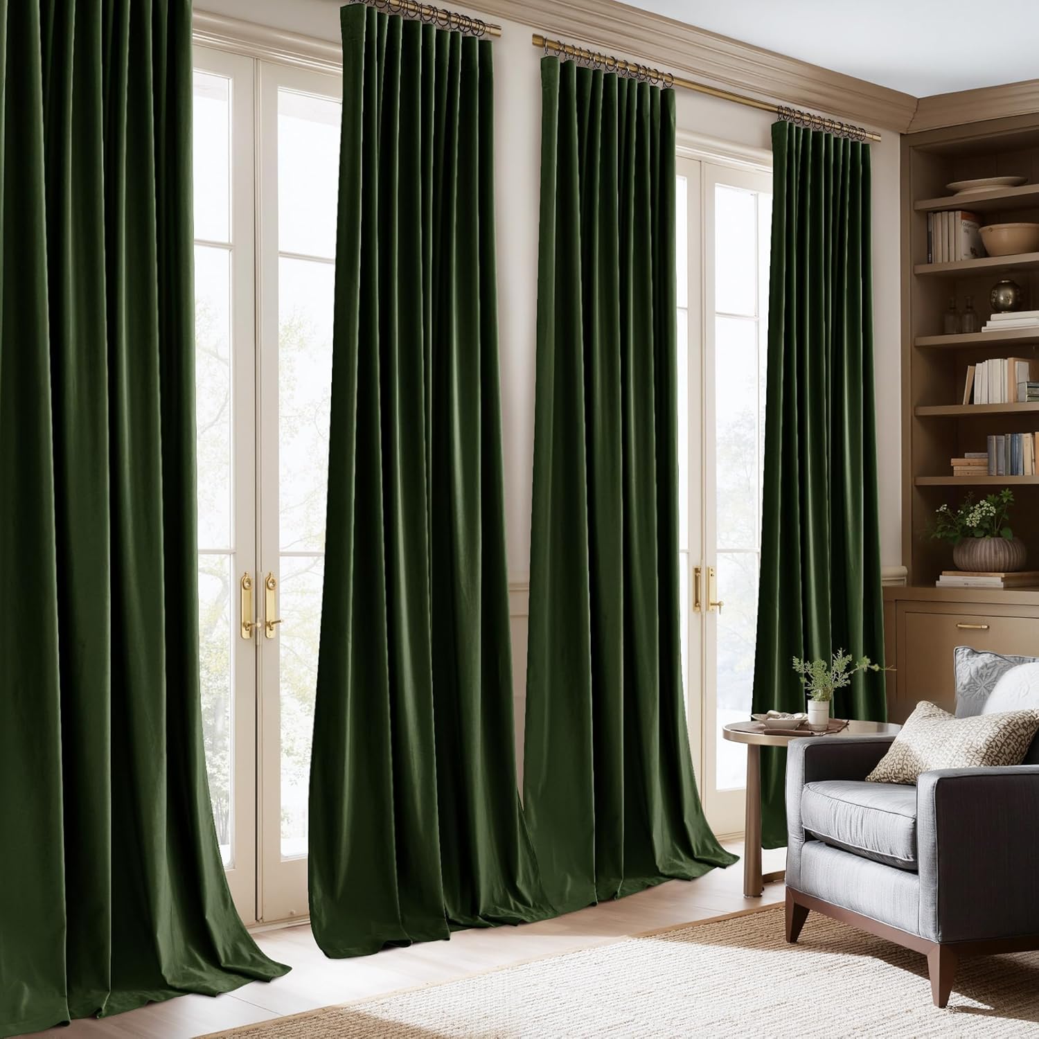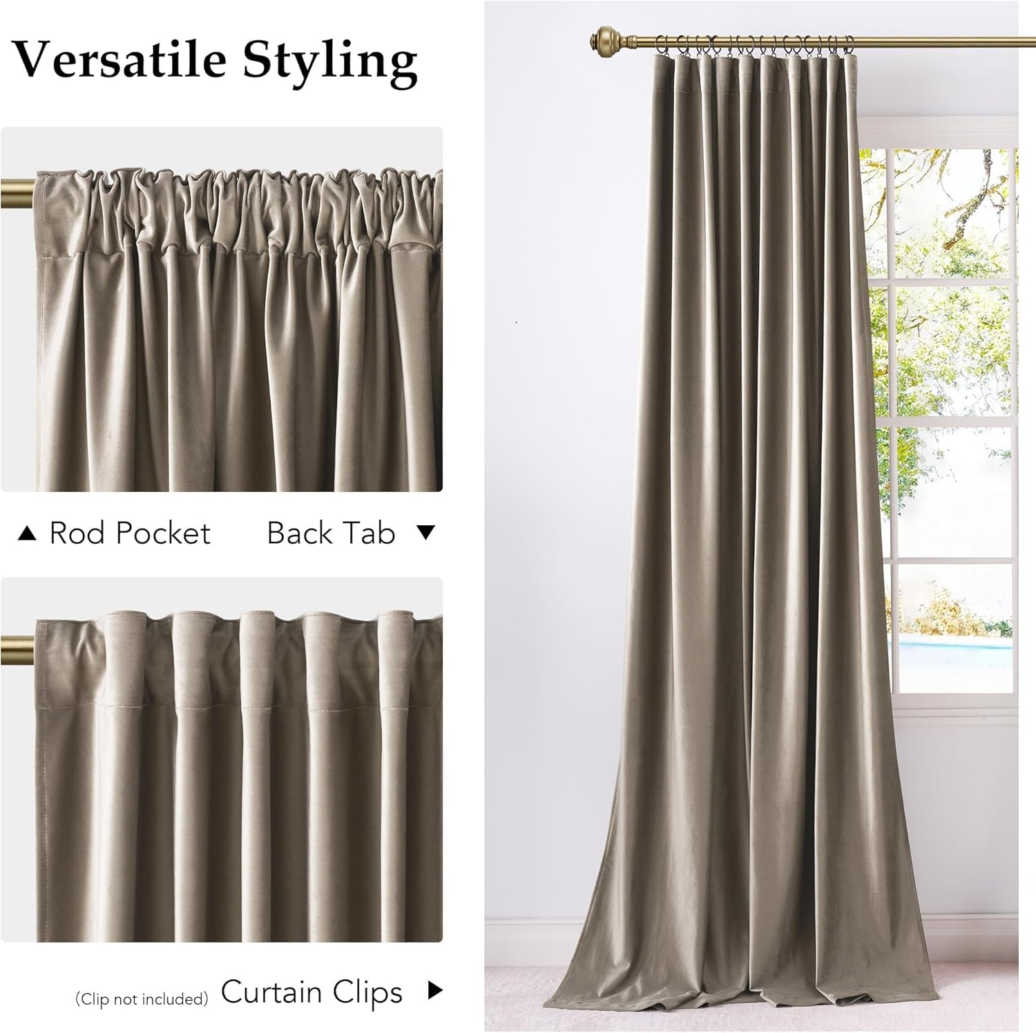 Crafted from premium velvet in a rich Olive Green, these curtains drape beautifully and add a touch of Art Deco elegance to any room. They come with a versatile top design featuring both a Rod Pocket and Back Tabs. This means you can easily slide them onto a standard curtain rod for a classic look, or use the back tabs for a more tailored, pleated appearance. For a pinch pleat style, simply use your own clip rings (not included) with the discreet loops. This flexibility ensures they'll perfectly complement your existing decor and window hardware.